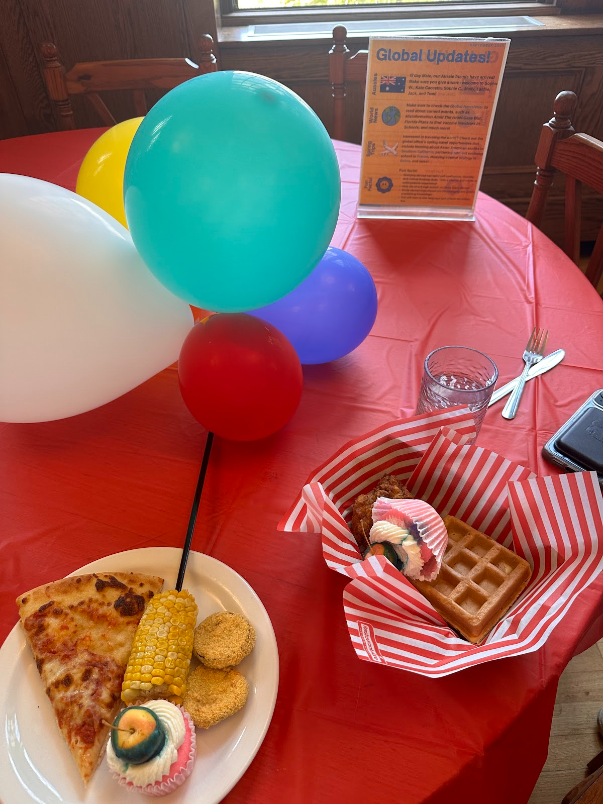 Did you notice a change in the dining hall this week? The usual aesthetic has been transformed into a carnival galore: the walls were decked out in red and white, balloons filled the space, and to top it all off, there was carnival-themed food, such as churros and fried pickles.